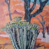 Moskaleva's painting is not just a depiction of nature but a fantasy where every element, from the whimsical shapes of succulents to the vivid hues of the sky, tells a story of unexplored adventures far from civilization.