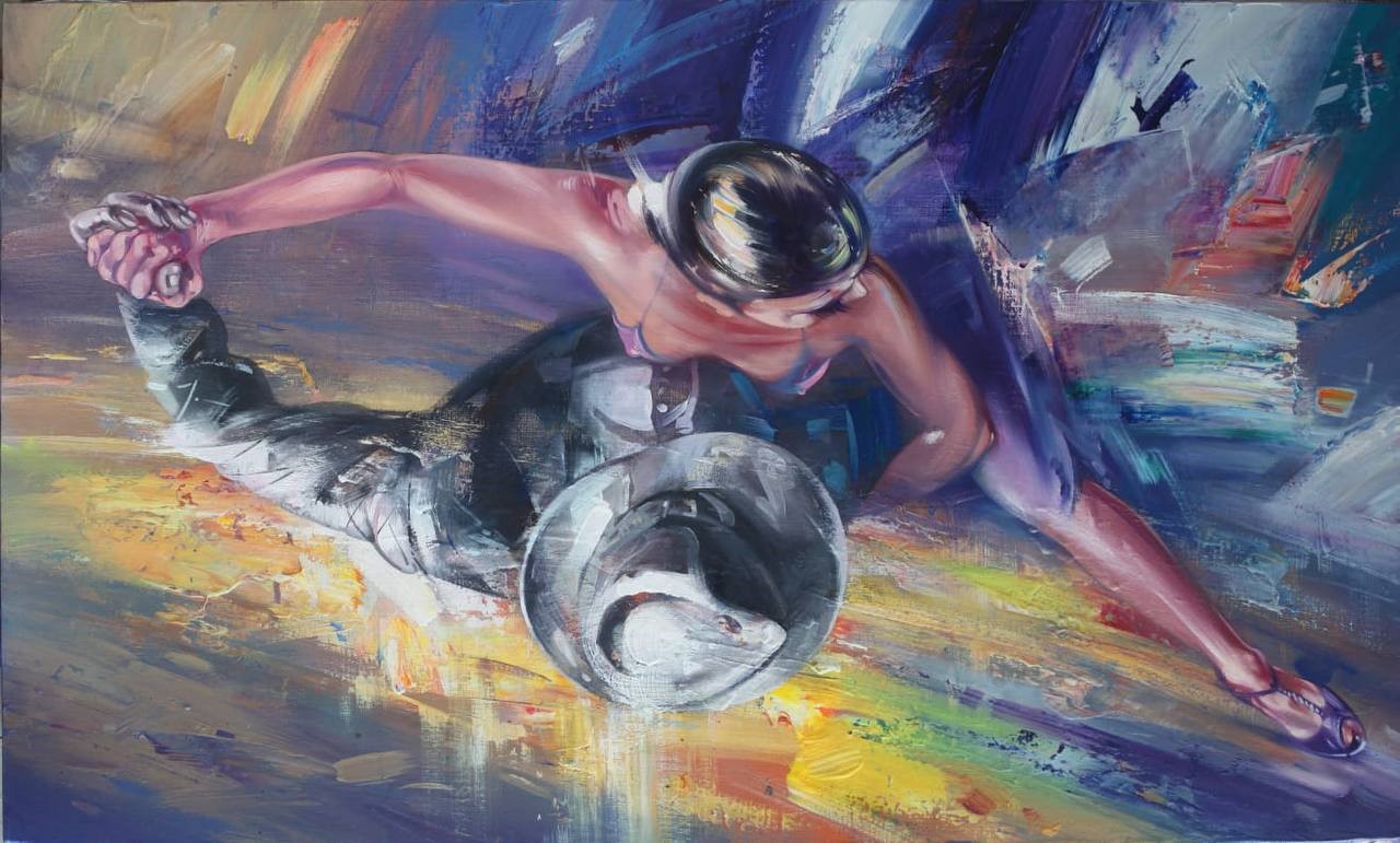 This scene is a symbol of the synergy of dance, passion and devotion of the partners, embodied in energetic brushstrokes and contrasting colors.