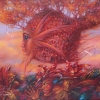 This painting is created in the style of surrealism and amazes the imagination with bright colors and unusual images. In the center of the composition is a mysterious creature, combining the features of a fish and a human, with an expressive eye and a head that turns into the crown of a tree. Its body seems to be woven from scales, mechanisms and natural elements, creating a feeling of merging nature and the machine world.