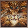 This painting is an expressive and emotional image of a lion, executed in an abstract manner. The artist uses rich golden-brown shades, creating a sense of powerful energy emanating from the animal. Thick brushstrokes and dynamic lines add liveliness and movement to the image, while contrasting bright colors emphasize the depth of the predator's gaze.