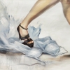 Realistic and metaphoric art work with young beautifu lady, dropping gentle white dress on the floor and dreaming about... something more individual, non-conforming, powerful and cool. This is a moment when she is ready to meet her shadow, accept it and get it's strength. Made from live model with some fantasy by artist.