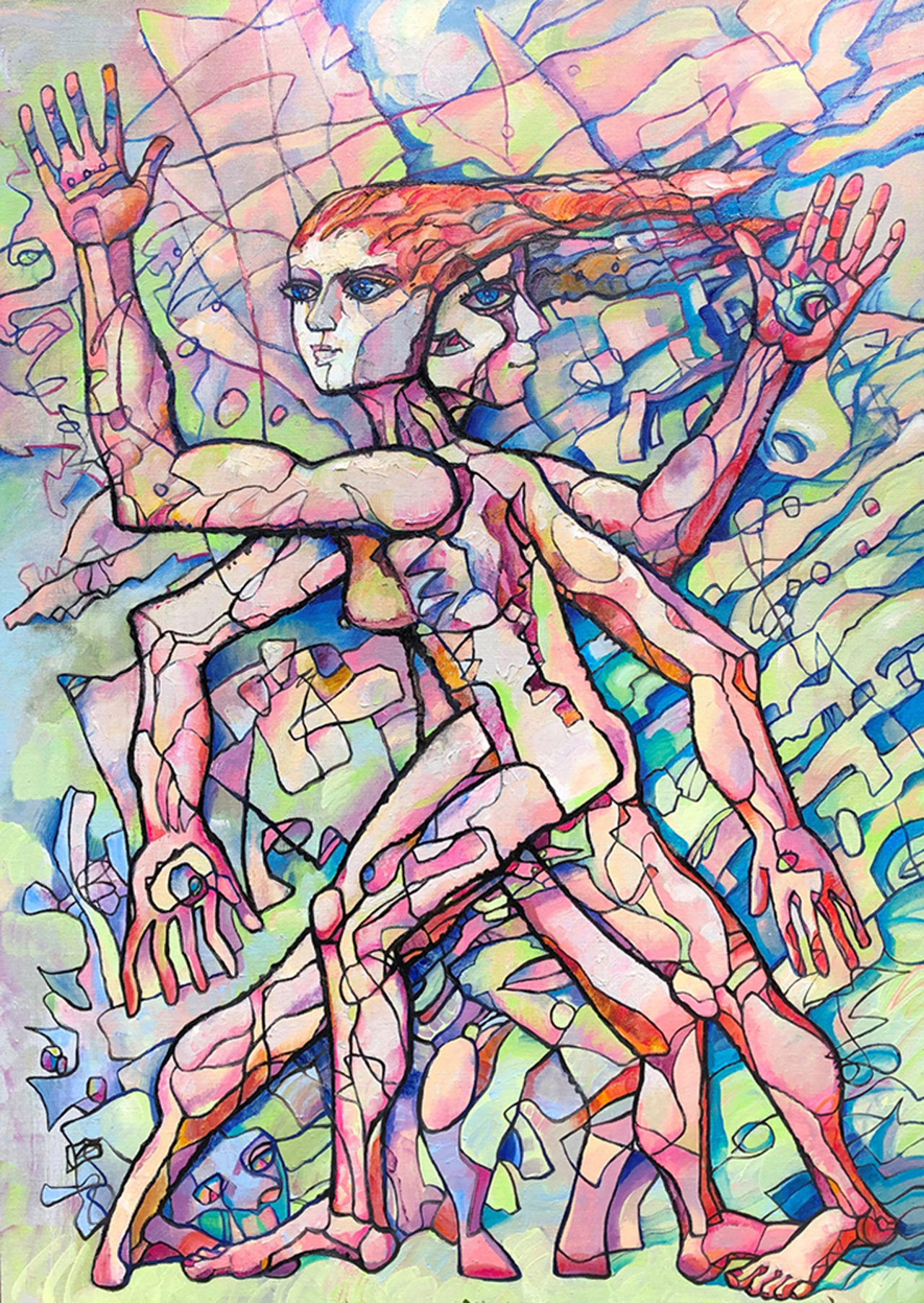 Игорь Копейкин своим талантом оживляет абстрактные понятия, воплощая в ярких образах глубокие психологические состояния. «Транс» — это не просто изображение, это опыт, который художник предлагает разделить со зрителем, погружая его в мир, где царят эмоции, движения и безграничная энергия.