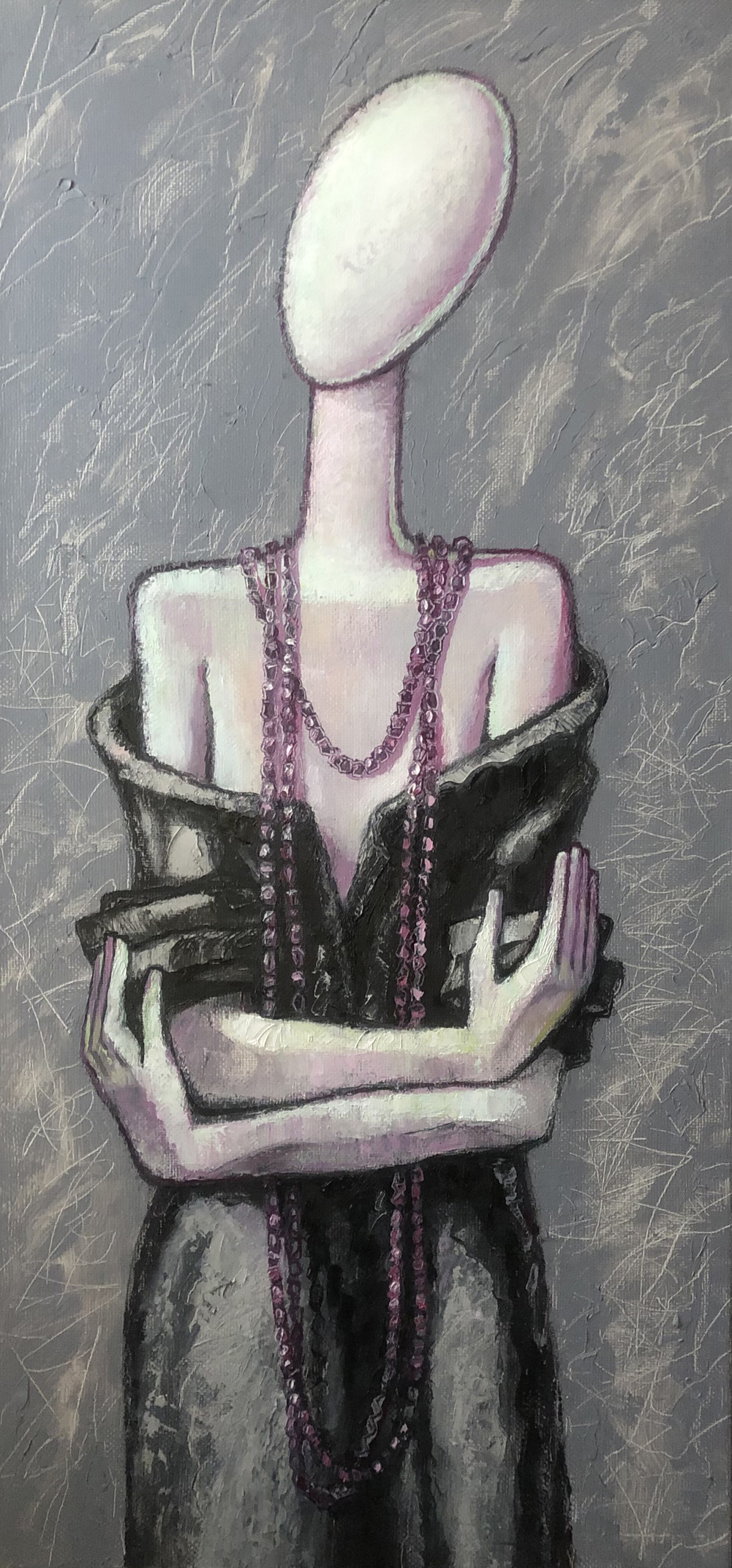 Центральная фигура картины — женщина, отсутствие чётких черт лица которой придаёт ей универсальность и символизм. Её тело, обрисованное характерными для Копейкина экспрессивными, но в то же время плавными линиями, излучает сосредоточенность и страсть. Этот образ может быть как конкретной женщиной, так и собирательным воплощением всех, кто питает глубокую любовь к театру. Отсутствие чётких черт лица делает её своеобразным зеркалом, в котором зритель может увидеть отражение собственных эмоций и переживаний, связанных с театральным искусством.