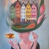 Martens masterfully creates a sense of weightlessness and immersion in a dream or deep memory. The composition suggests that the city, its architecture, and atmosphere can live inside us, awakened by a simple action — for example, a cup of morning coffee. This is not just a landscape, but a personal, colorful map of the city born from imagination.