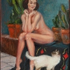 Elena Martens' painting «In the Italian courtyard» transports the viewer into an atmosphere of coziness and summer warmth, combining the depiction of the nude figure with elements of exotic flora.
