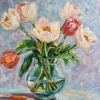 Картина Софии «Тюльпаны» — это яркий, импрессионистский всплеск весеннего настроения, запечатлённый на холсте. Художница мастерски передаёт хрупкую красоту и свежесть тюльпанов, используя энергичную и экспрессивную технику.