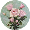 Представляем вашему вниманию завораживающую работу художницы Софии под названием «Нежные цветы». Это круглое полотно, словно драгоценный медальон, хранит в себе мимолетную красоту и утонченную эстетику нежных розовых роз.