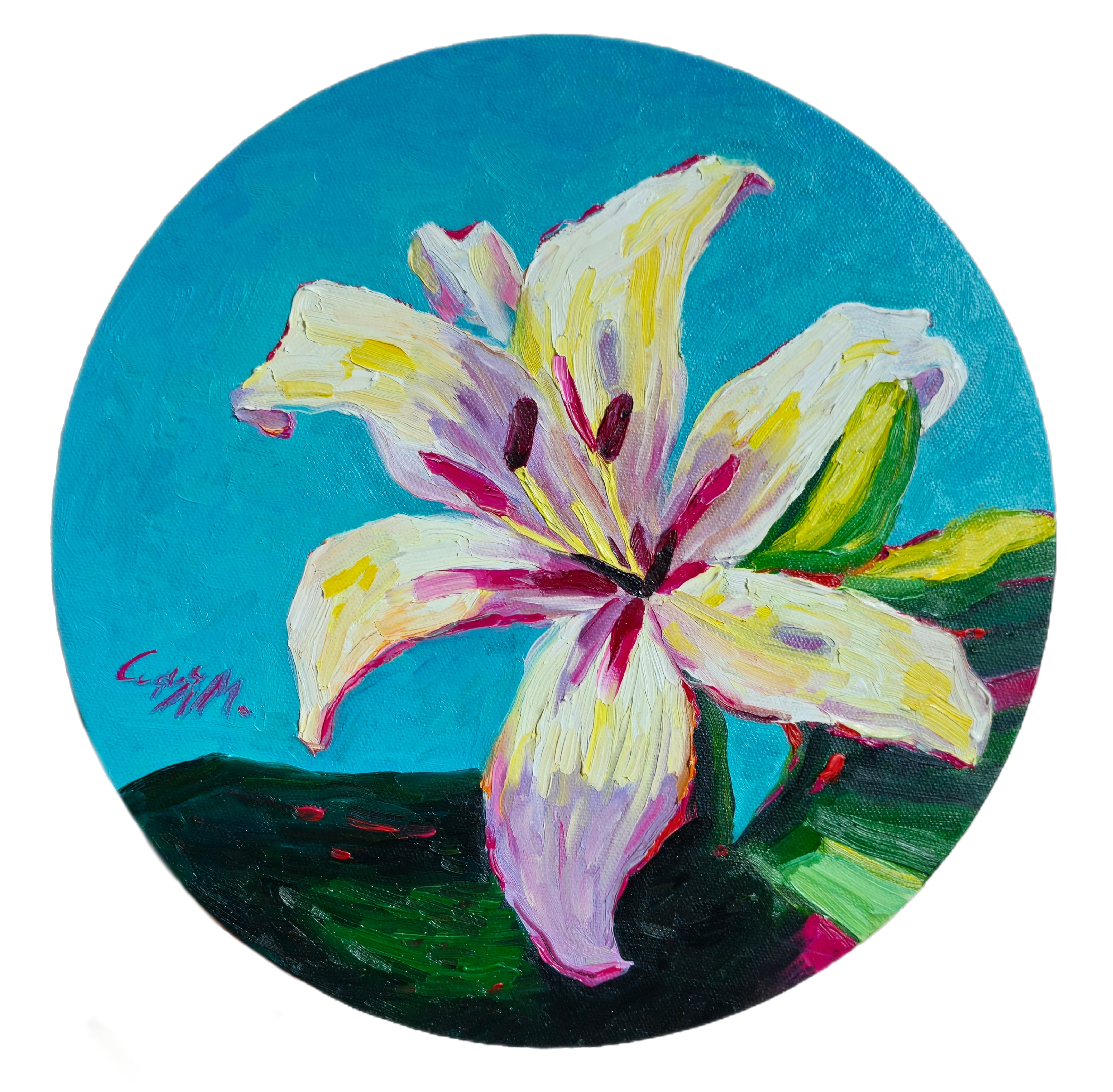 Картина “Lily” (Лилия) художницы Софии – это изящное и утонченное произведение, которое восхваляет красоту одного из самых элегантных цветов. Полотно, выполненное в круглой форме, с акцентом на яркие цвета и экспрессивные мазки, погружает зрителя в мир нежной красоты и символизма.