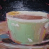 The painting evokes associations with home comfort, tranquility, and the simple joys of life. The combination of colors and the free painting style create a light nostalgic atmosphere.