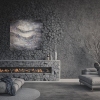 This large interior painting is created using the mixmedia art technique, textured pastes, and acrylic.