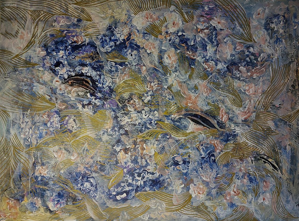 The painting reminds us that a woman possesses an amazing gift: she sees not only with her eyes but also with her heart. It is this aspect of her perception that allows her to notice nuances and small details that often escape most people. The abundance of floral elements symbolizes the multiplication of small but significant events and details that come together to form the larger picture of life.