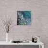 Эта картина создана в технике mixed media и сочетает контрастные цвета: черный, бирюзовый, темно-синий и белый, что придает работе динамику и импульс к действию. Контрасты подчеркивают искренность намерений и силу веры, а плавные переходы оттенков создают ощущение глубины и внутренней гармонии.