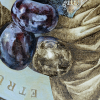 The viewer can almost physically feel how the flowing fabric, like the waters of the River of Oblivion, “washes away the dust of centuries,” revealing an ancient helmet and a woman's profile on an old fresco. The key contrast with the past is the plums on an ancient dish. The ripe fruit embodies the fragile beauty of the present, which in a second will become a shadow. Their proximity to the ancient bronze helmet visualizes the unity of time: the past and the present side by side.
