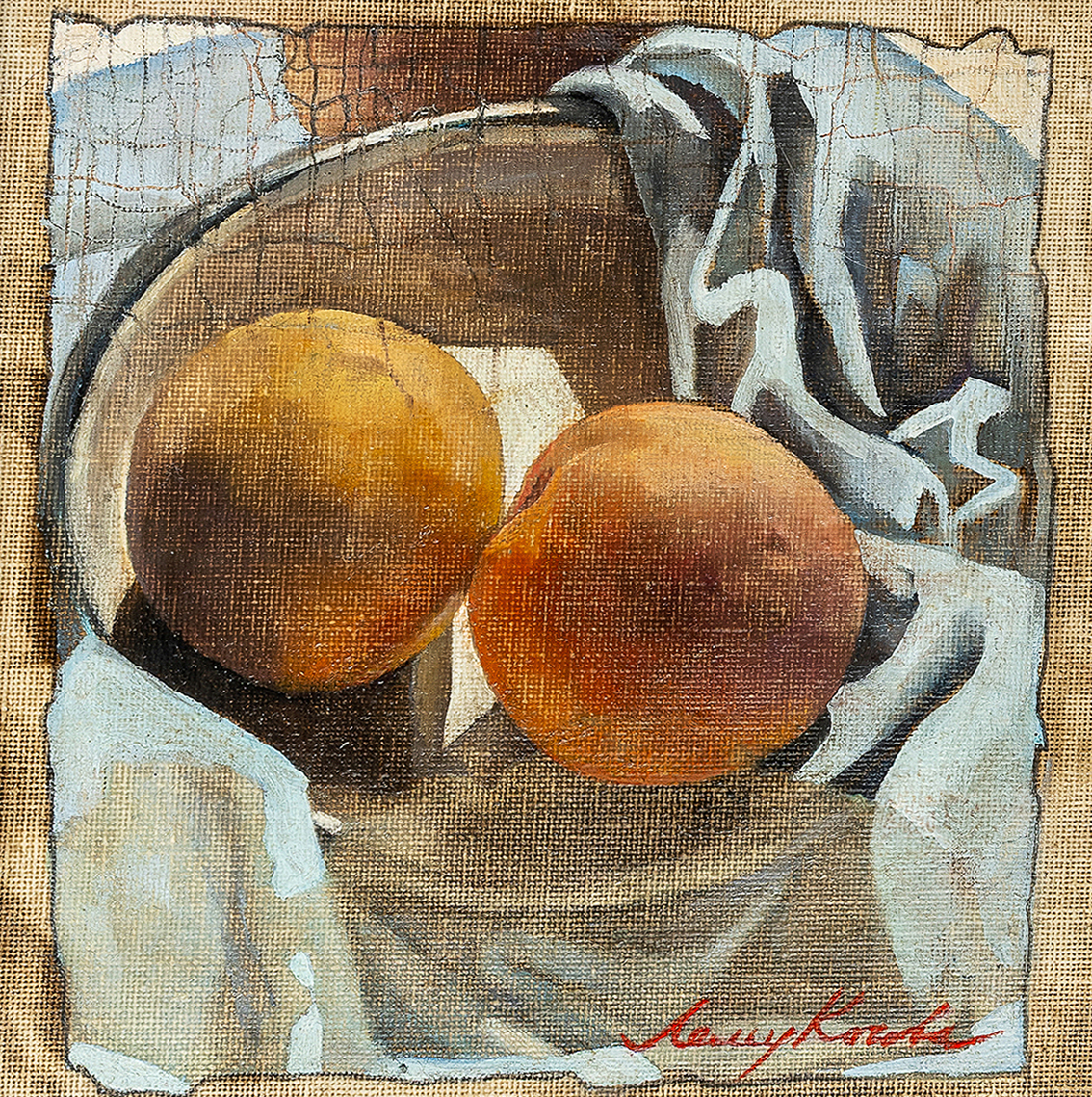“Blue Bliss” is a painting for connoisseurs of refined aesthetics. It is a still life warmed by the hot breath of the south. The peaches on the canvas radiate an inner light, their velvety skin, shimmering in the sun, is enveloped in the blue bliss of the finest drapery. The painting seems to transport us to a carefree midday on the sun-drenched veranda of an Italian villa. The work is based on the play of light effects: rich colors are juxtaposed with areas where the texture of the canvas shines through.