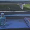Self-isolation is also indicated by a bottle of a disinfectant standing on the windowsill.