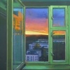 In our house, in the lobby near the elevator, the walls are green. I went out into the hall, it was summer, the window was open, and I saw a very beautiful sunset. And the green walls were brightly lit by the hall lamp.