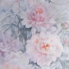 At the center of the composition is a large, lush peony, its petals unfolding to create a sense of volume and life. The flowers are rendered in soft, pastel tones: pinks, creams, peaches, with subtle touches of blue and green. The watercolor technique allows the artist to achieve gentle, transparent color transitions, creating a feeling of airiness and lightness. The peony’s petals appear so delicate that they could be accidentally torn upon touch.