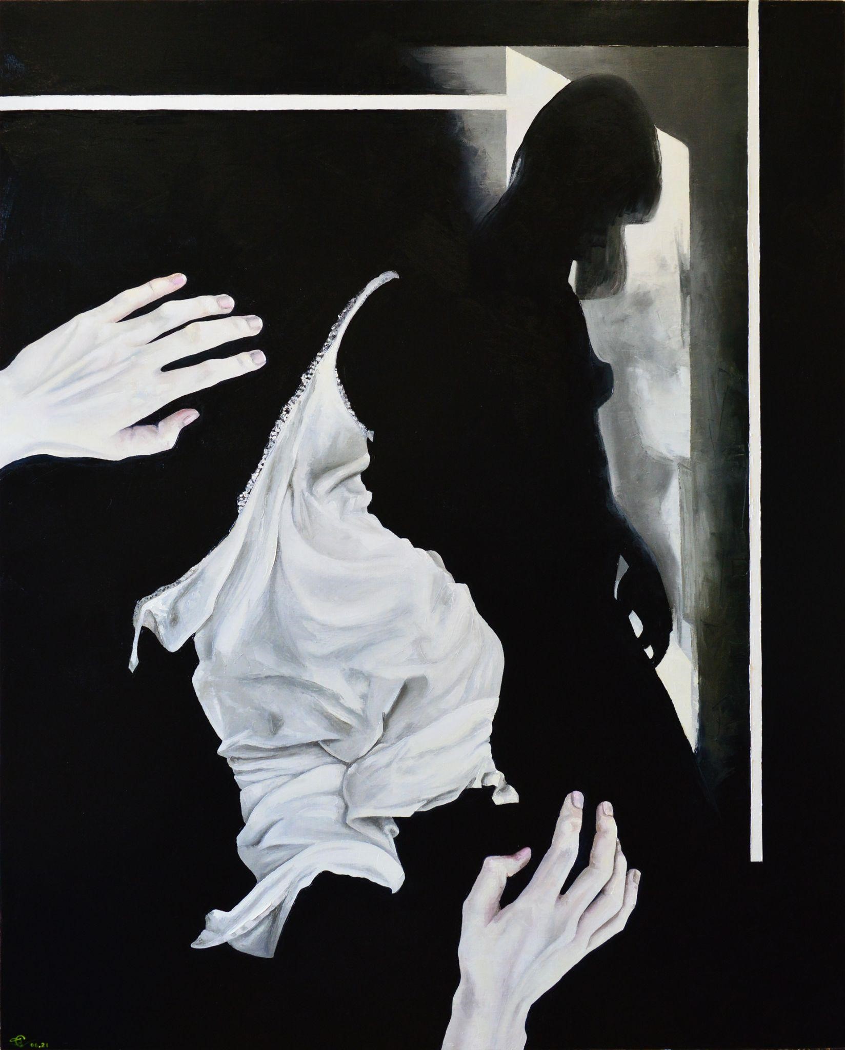 Original painting for sale online, created by contemporary Russian artist Stolyarov Vadim, painted in 2021, “Projection into Reality.”