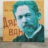 Pavel Pashkin uses contrasting colors and bold yet clear lines to give the portrait expressiveness. The turquoise shade of Chekhov’s skin and hair sharply contrasts with the warm, antique background, creating visual tension that makes the viewer pause and look closely. This combination of a “cold” portrait and a “warm” background perhaps symbolizes the timeless relevance of his works, which touch on profound human dramas.