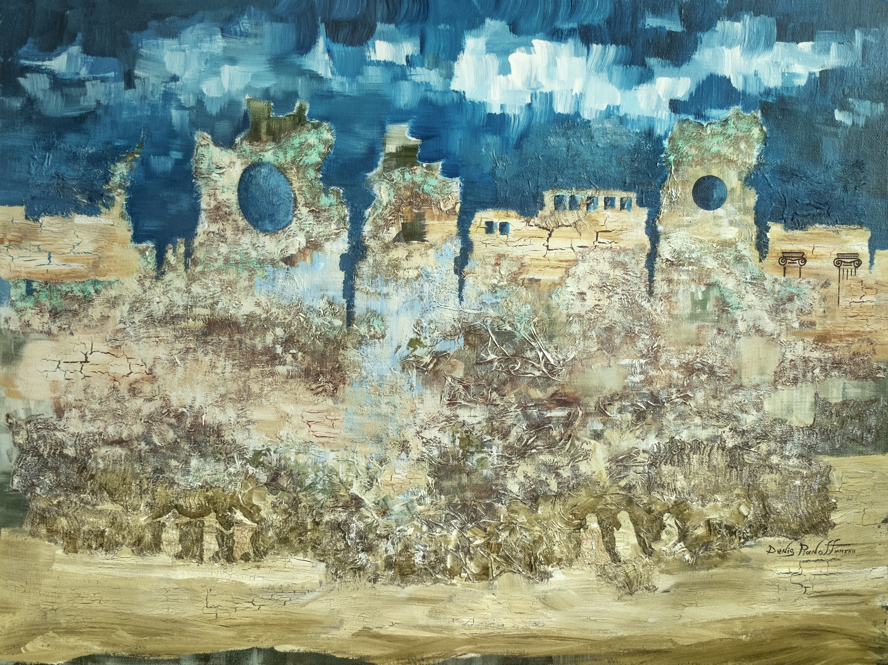 «The Empire Before the Rain» is a painting that makes the viewer reflect on the cyclical nature of history, the rises and falls of civilizations, the power of nature, and the inevitability of change. Denis Pianov’s work is not just a landscape but a metaphor reflecting our own reality, where grandeur coexists with decline, and the past warns of the future. The painting captivates with its depth, symbolism, and ability to evoke strong emotions and reflections on humanity’s place in history and in the face of nature’s forces.