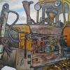 Fedor Pomelov’s painting «Bulldozer DT-75» is a powerful piece in which an ordinary work machine takes on symbolic meaning, becoming an embodiment of strength, labor, and resilience. Pomelov, who worked from life in the Vologda region, conveys not just the image of the machinery but its spirit, its role in mastering nature and creating something new.