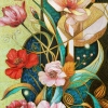 A special role in the painting is played by the Art Nouveau style, manifested in every element. The curved, flowing lines of stems and leaves twist, resembling living plants, yet obeying a strict decorative logic. The green and turquoise shades of the foliage create a sense of freshness and coolness, while golden accents add luxury and solemnity.