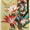 Igor Razzhivin masterfully uses the contrast between light and darkness, between the earthly and the cosmic. The golden pattern in the background, like ancient script, adds mysticism and depth to the painting. This pattern seems to envelop the flowers, giving them a sacred significance.