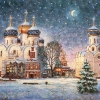 The painting by Igor Razhivin «Visiting a Christmas fairy tale» is a mesmerizing view of winter Russia, where architecture and nature merge into a single fairy-tale image. The artist masterfully conveys the magic of a Christmas evening, enveloping ancient churches in a mysterious glow.