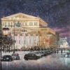 Razhivin skillfully conveys the texture of the building, playing with the warm shades of the facade and the cold purple-blue night sky. The falling snowflakes, painted with small bright strokes, seem to bring the scene to life, making it dynamic. The city bustle — cars below and silhouettes of passersby — does not disturb the theatre’s majestic calm but rather emphasizes its status as a symbol of culture. The painting is filled with light and pride, inviting the viewer to feel the scale of the event and the grandeur of the architecture, timeless and enduring.