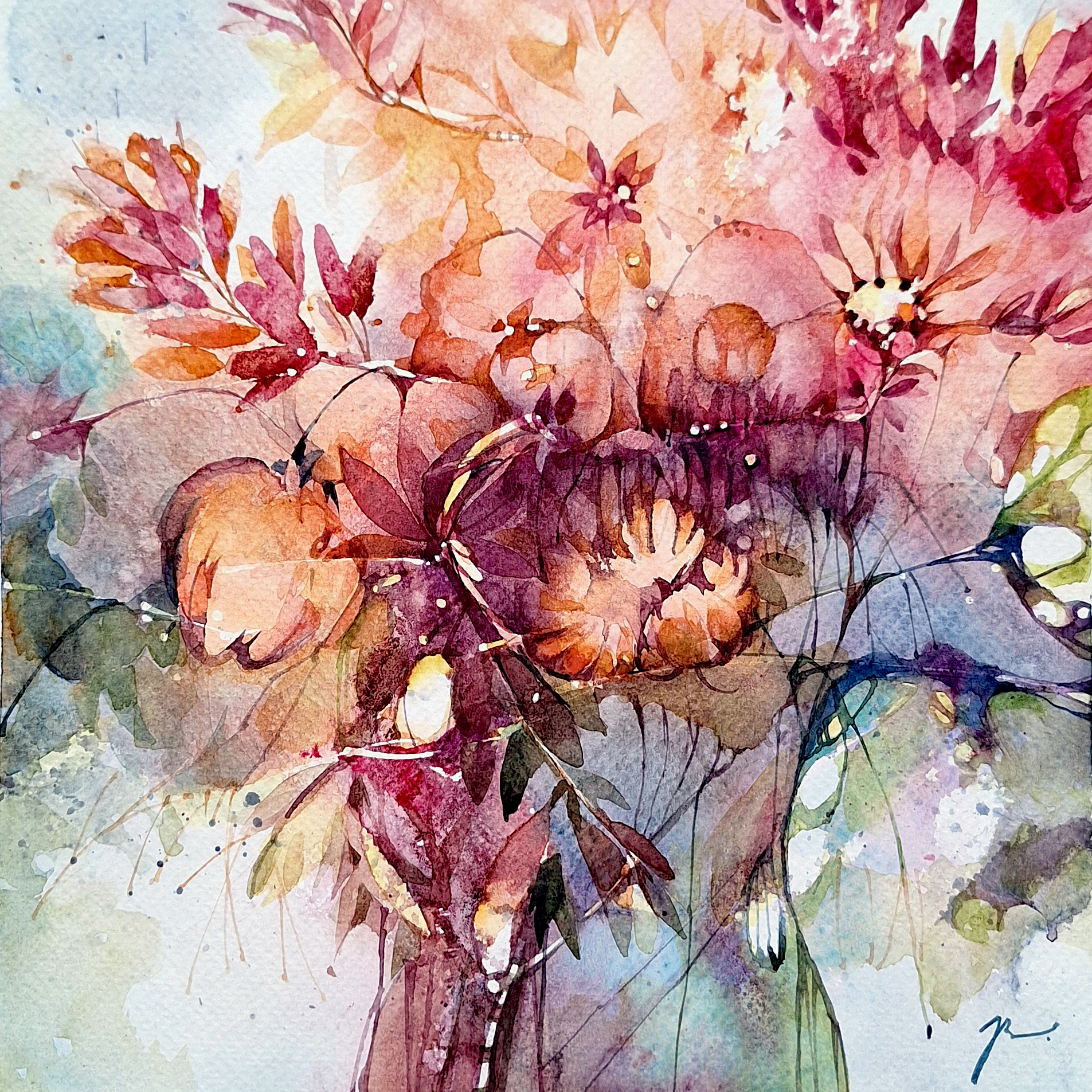 The watercolor technique chosen by the artist perfectly emphasizes the ephemerality and delicacy of the composition. The translucent layers of paint create a sense of lightness and airiness. The brushstrokes appear weightless, like the touch of a brush conveying the trembling of nature. The colors flow smoothly into one another, creating a harmonious unity where every detail is in its place yet remains part of a single, breathing whole.