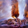 The artist creates an abstract, mystical world where shapes and colors evoke associations with something grand, overwhelming, and inevitable. Complex, intertwined lines, dark and cold shades mixed with bright, swirling spots convey a sense of chaos, yet also hidden strength. The absence of clear depictions of human figures or recognizable objects forces the viewer to focus on the emotional and philosophical content.