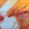 To the right and around the figure unfolds a storm of colors. Bright fiery shades — orange, red, golden — blend into each other, creating a sense of whirlwind, movement, and energy. These colors seem to convey the power of the wind, its heat and intensity. Among them, dark sharp strokes and lines are scattered chaotically, resembling leaves flying in the wind or even swift letters that the wind seems to snatch from the hands.