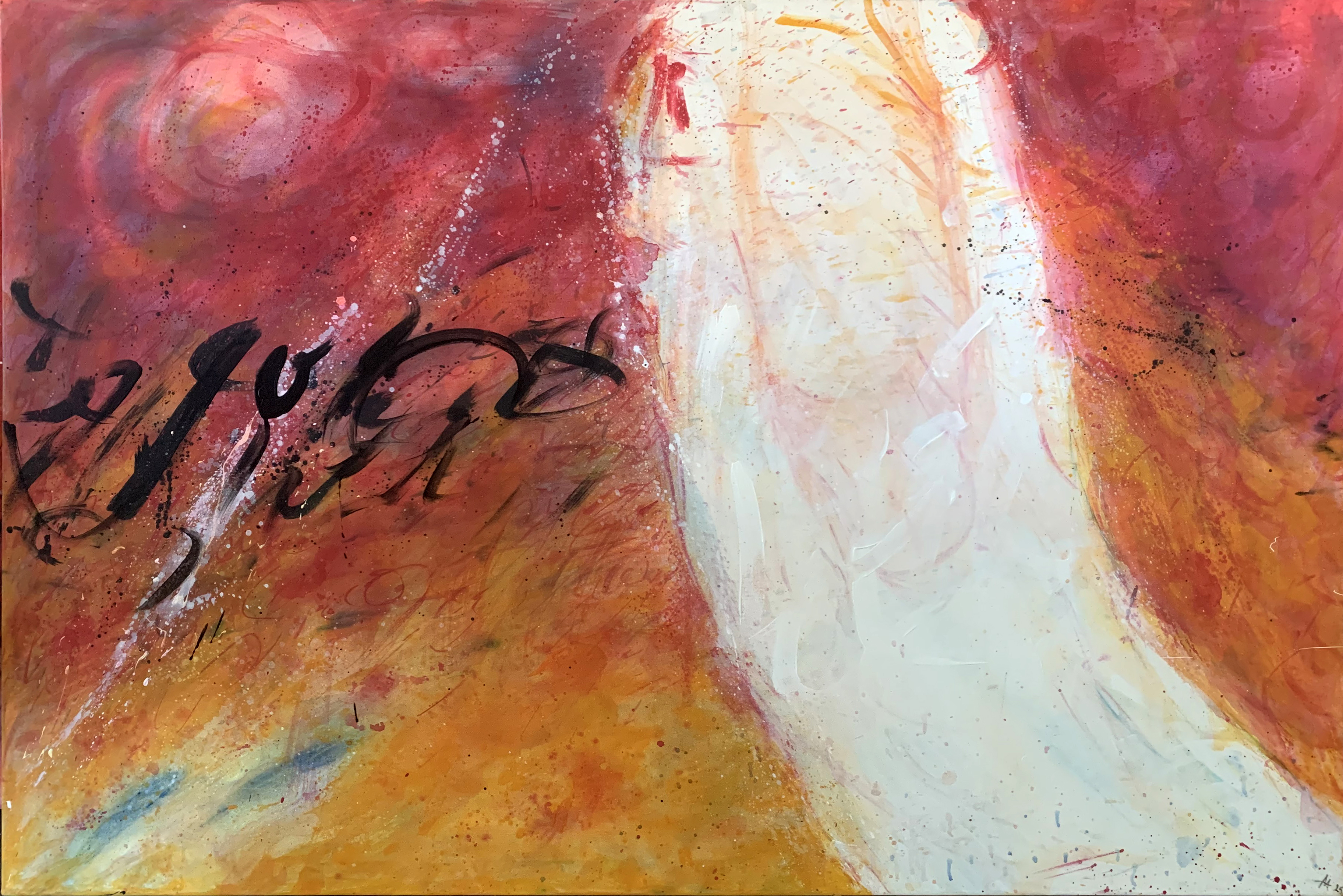Around this central white mass unfolds a riot of warm, sunny shades. Bright reds, oranges, and golden hues contrast with the white, creating the impression of light breaking through the clouds or a sunset coloring the sky. These warm colors give the painting energy and life, hinting that even the most transparent cloud can be filled with light and color.