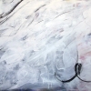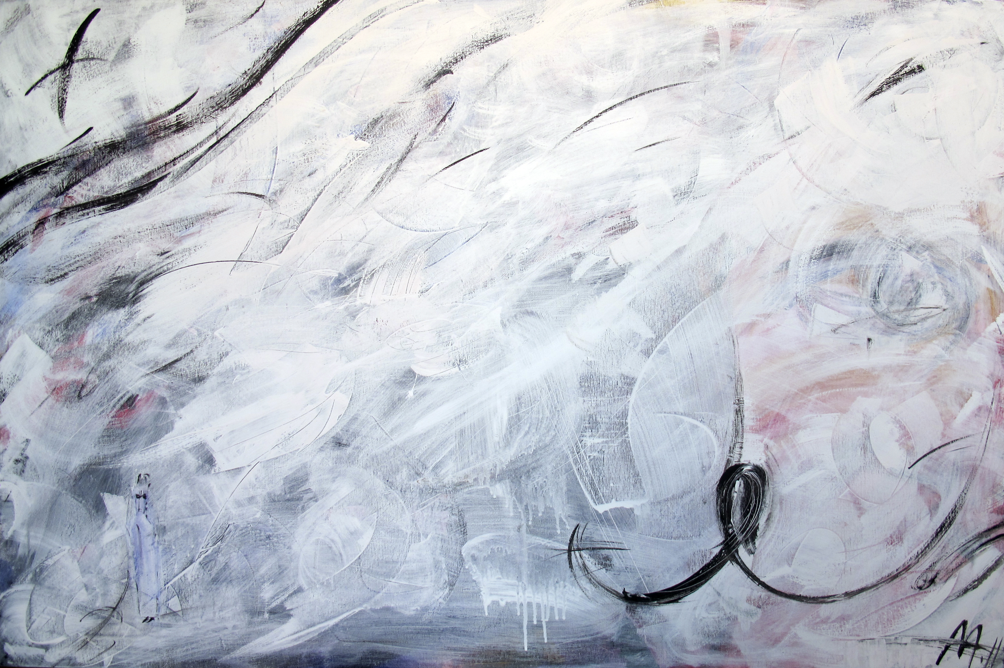 Under the layers of white, darker, deeper shades peek through—gray, blue, violet, as well as rare specks of red and pink. They create a sense of depth, hinting at mysteries hidden beneath the surface. These dark tones contrast with the prevailing white, giving the painting drama and tension, much like during a storm.