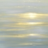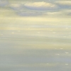 The sky above the water is painted in gentle, pastel tones. The clouds, light and translucent, seem woven from mist and light. They do not obscure the sun but rather frame it, enhancing the effect of softness and tranquility. The color palette of the painting is built on the finest transitions of blue, gray, and golden-yellow. These restrained, harmonious shades create a feeling of calm, purity, and inner silence.