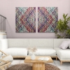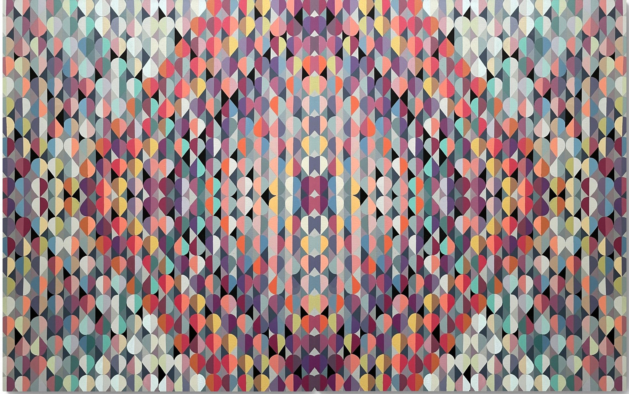 The artist plays with the size of the canvas and the direction of color lines to achieve an optimal vibration range that is comfortable for perception in terms of impact.