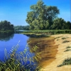 Igor Dubovoy masterfully conveys the play of light and shadow; his brushstrokes are precise and expressive. He skillfully depicts the sparkle of the water, the roughness of the sand, and the softness of the foliage. The color palette of the painting is a true riot of summer hues: bright shades of blue, green, yellow, and brown all blend into a harmonious composition.