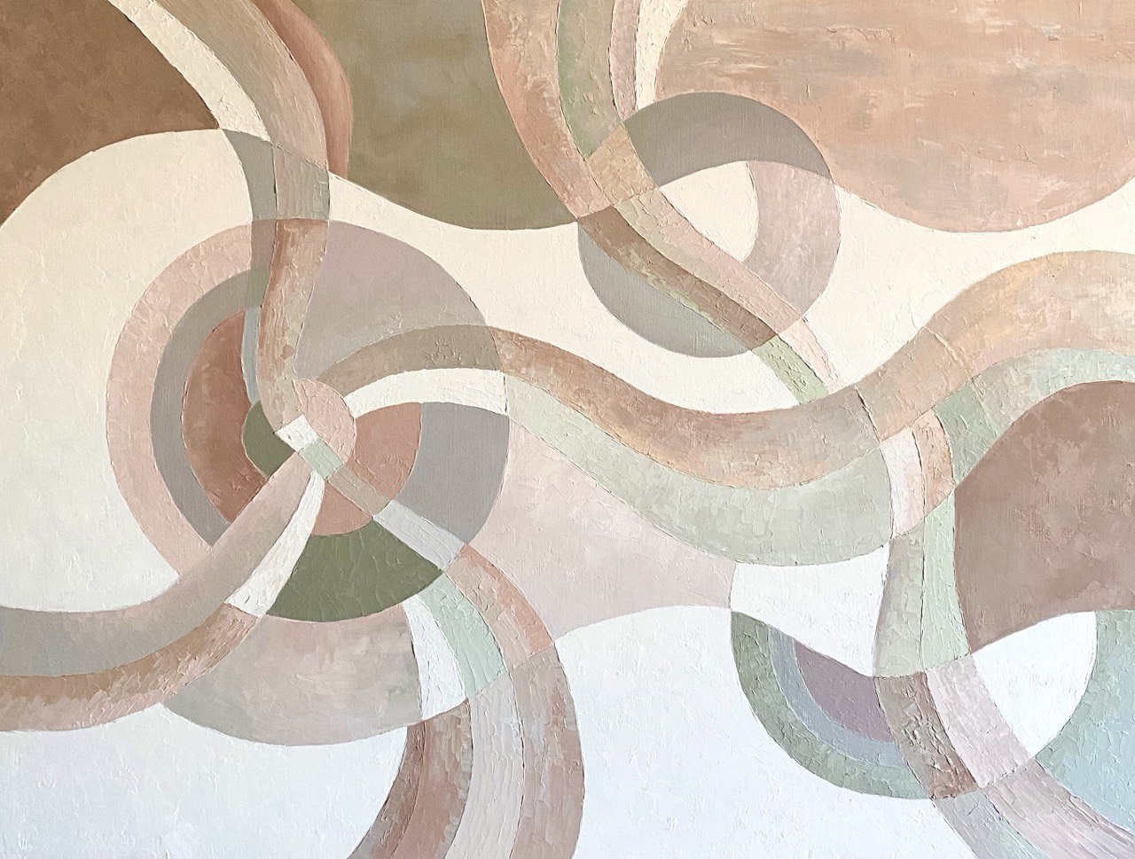 The central theme of the work is the concept of gravitational waves, predicted by Albert Einstein. Tiik interprets these waves not merely as a physical phenomenon distorting space-time but as a metaphor for the invisible connections existing between people, thoughts, and events. The intersecting circles on the canvas symbolize planetary orbits or particle trajectories, as well as cycles of time, while the waves embody the consequences of our actions affecting reality.