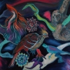 Anastasia Poliakova’s painting "Animals" is an ode to biodiversity, presented through the lens of vivid, masterfully executed surrealism. The artist transports the viewer into the heart of a tropical forest, which resembles a coded message from the deep layers of nature and the subconscious.