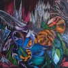 Anastasia Poliakova's painting "Snake" — a powerful and intriguing piece that takes the viewer into the dark, primal depths of the subconscious, where ancient symbols and mystical images dwell. The artist creates an atmosphere of a mysterious, almost Gothic landscape filled with vivid bursts of color.