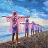 At the seashore at dawn, children line up wearing identical pink raincoats. They stretch their arms out to the sides, like living antennas catching signals from the world.