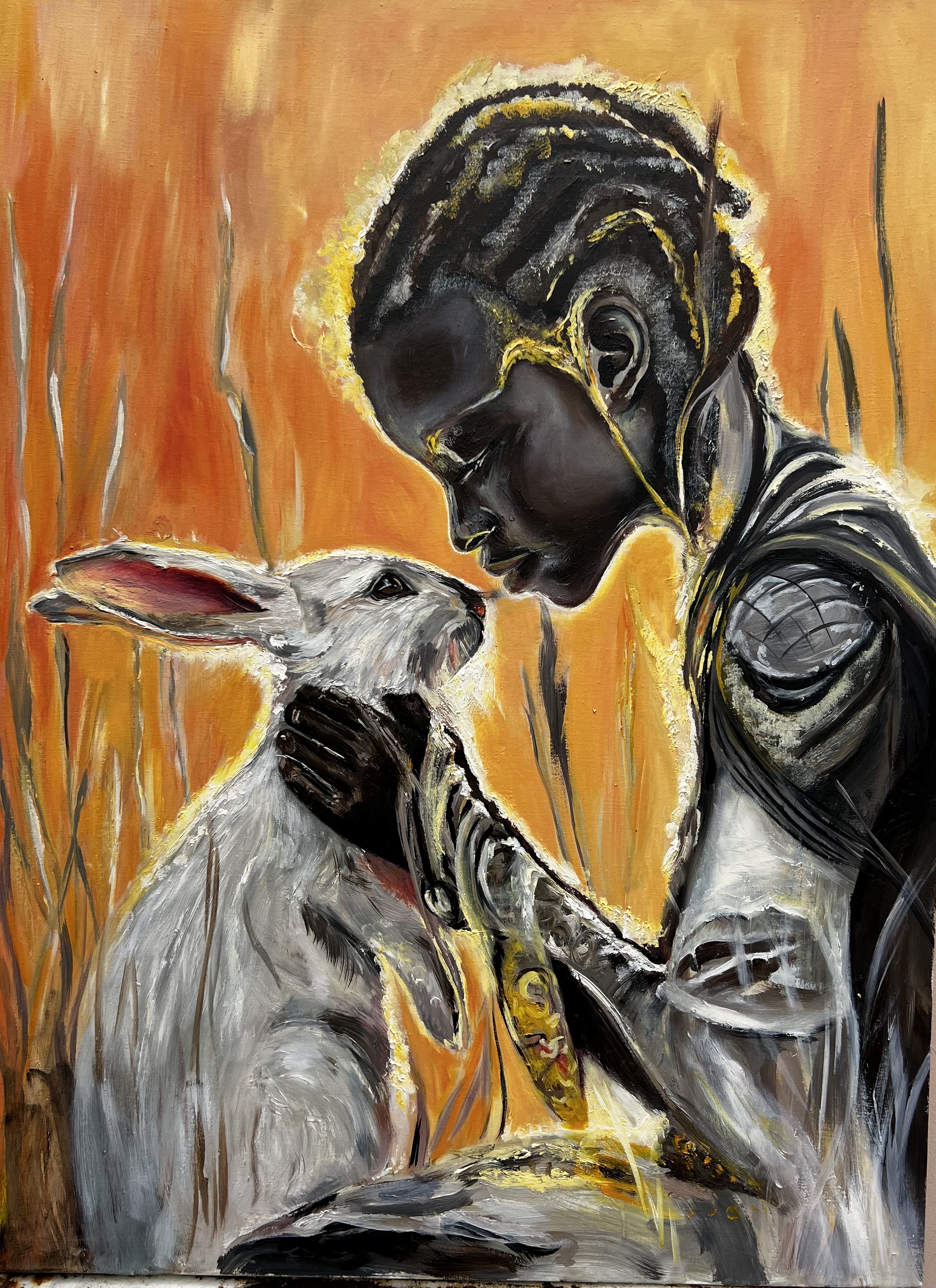 The rabbit here — is the Soul itself, trembling, pure, almost weightless. And the way it meets the girl's gaze — it is a dialogue without words, a conversation about trust, acceptance, and the fact that a person is capable of hearing the whisper of their eternal essence. Some see tenderness in this gesture, others — strength, others — struggle, but it all depends solely on how deeply we are able to look within ourselves.