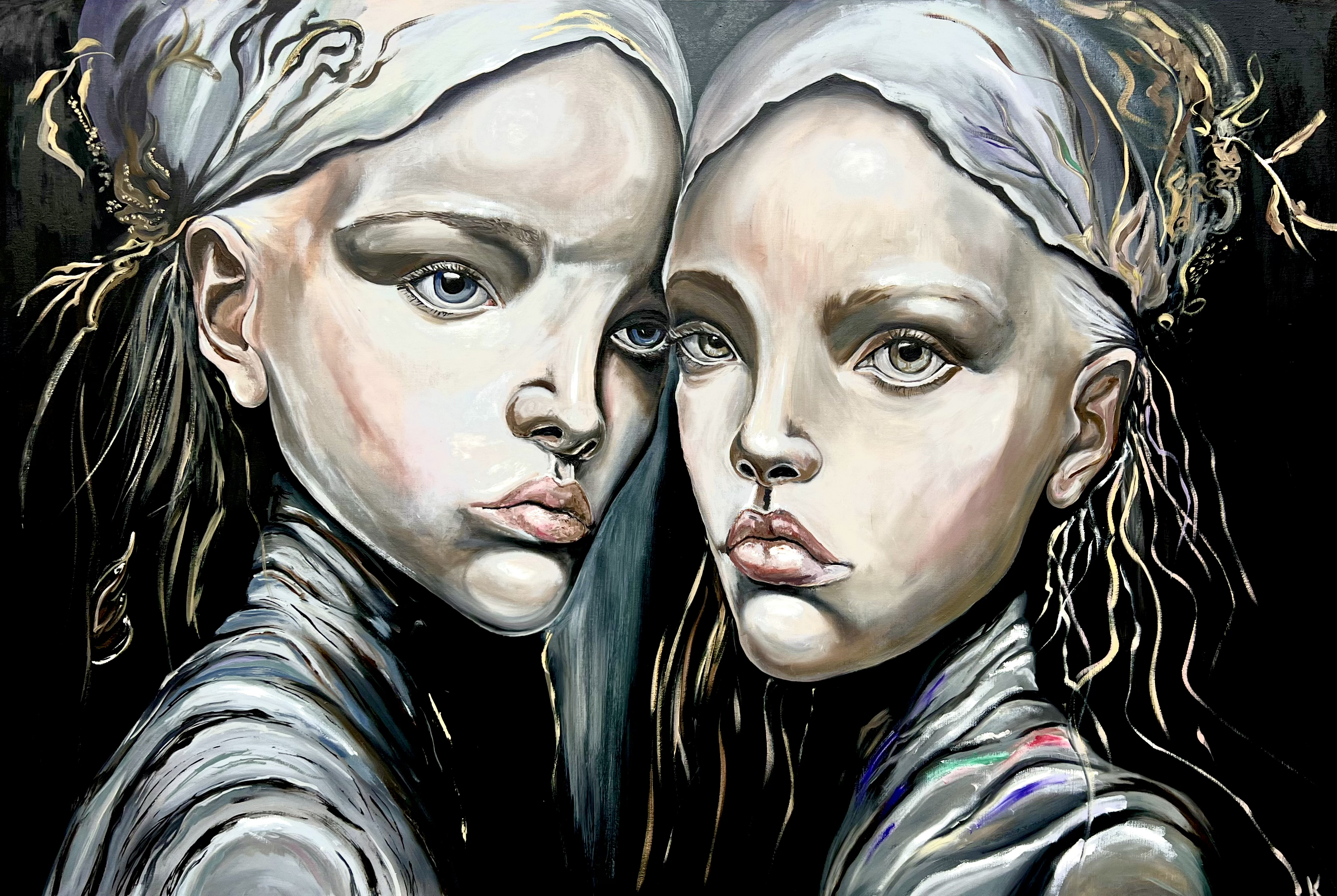 These two beings may look similar, but they are not the same. They come to give each other what is missing — to awaken, heal, and remember. There is no smile on their faces, only quiet knowing. The moment before parting is already written in the light between them — that subtle glow that whispers: it’s time to let go.