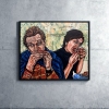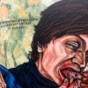 The artist’s style, expressive and at times deliberately rough, highlights the discomfort and tension the painting may evoke. The colors are rich but not always harmonious, reflecting a certain disharmony in the relationships or in the very act of eating. The background, painted in calmer tones, contrasts with the foreground, drawing attention to the main action.