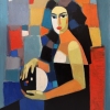 The painting «Strange Stranger» by Elena Shipilova is a vivid, multifaceted portrait executed in a style close to synthetic cubism and expressionism. The work attracts attention with its bold use of color and geometric forms, creating the image of a mysterious and strong personality.