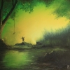 At the center of the composition is a figure of a child standing at the very edge of the water, anticipating a jump. A swing hangs from the branch of an old tree — a faithful attribute of noisy boyish games, inviting a daring flight over the mirror-like surface of the forest river. The emerald haze and soft, almost otherworldly glow transform the familiar landscape into a fairy-tale place from dreams. Klyuev skillfully uses the play of light and shadow, giving the forest a mysterious depth.