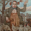 The painting measures 115x106 cm and can be hung on the wall to decorate the interior of an apartment, house, office, restaurant, or hotel. You can buy art works “We just live and chew bread” online with free shipping to your location!