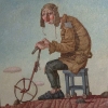 Sergey Merenkov’s painting “The one driving will master the road” is not just an image of a person with a bicycle, but a multi-layered ironic parable about belief in oneself, overcoming difficulties, and, perhaps, the absurdity of the path itself. The artist creates a grotesque and memorable image that simultaneously evokes a smile and makes us think about how we choose our path, what goals we set for ourselves, and what it really means to “master the road.” The canvas depicts a person sitting on a stool with wheels and holding a homemade bicycle without pedals. His face expresses concentration, humility, and perhaps some confusion. He seems to be preparing for a long and difficult journey, but his means of transportation raise doubts about the possibility of its implementation.