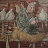He sits on a perch, surrounded by real chickens, and it seems that he is trying to fit into their world, but at the same time feels alien and inappropriate. The title of the painting, “Chicken is not a bird”, is a well-known saying that emphasizes social inequality and diminishes the importance of those who are at the bottom of the hierarchy. The chicken costume worn by the person becomes a symbol of this humiliation and loss of their own individuality.