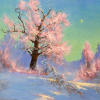 This painting conveys the fragile beauty of a winter evening, where time seems to have frozen, providing a quiet and enchanting harmony of nature.